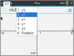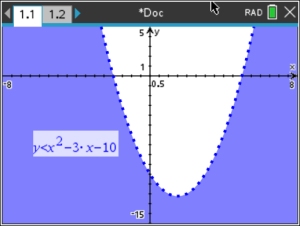 On the TI-Nspire CX II, inequalities will be graphed as relations, not functions.