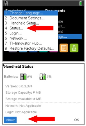 Note: The top portion of this "Handheld Status" screen will show the calculator's current