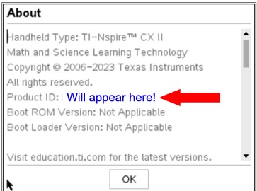 The number listed after Product ID: will be the calculator's unique Identification Number.